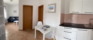 liegt im Erdgeschoss und verfügt über ein ruhiges Schlafzimmer mit Doppelbett. Eine komplett ausgestattete Küche, einen Wohn- & Essbereich und ein eigenes Bad,