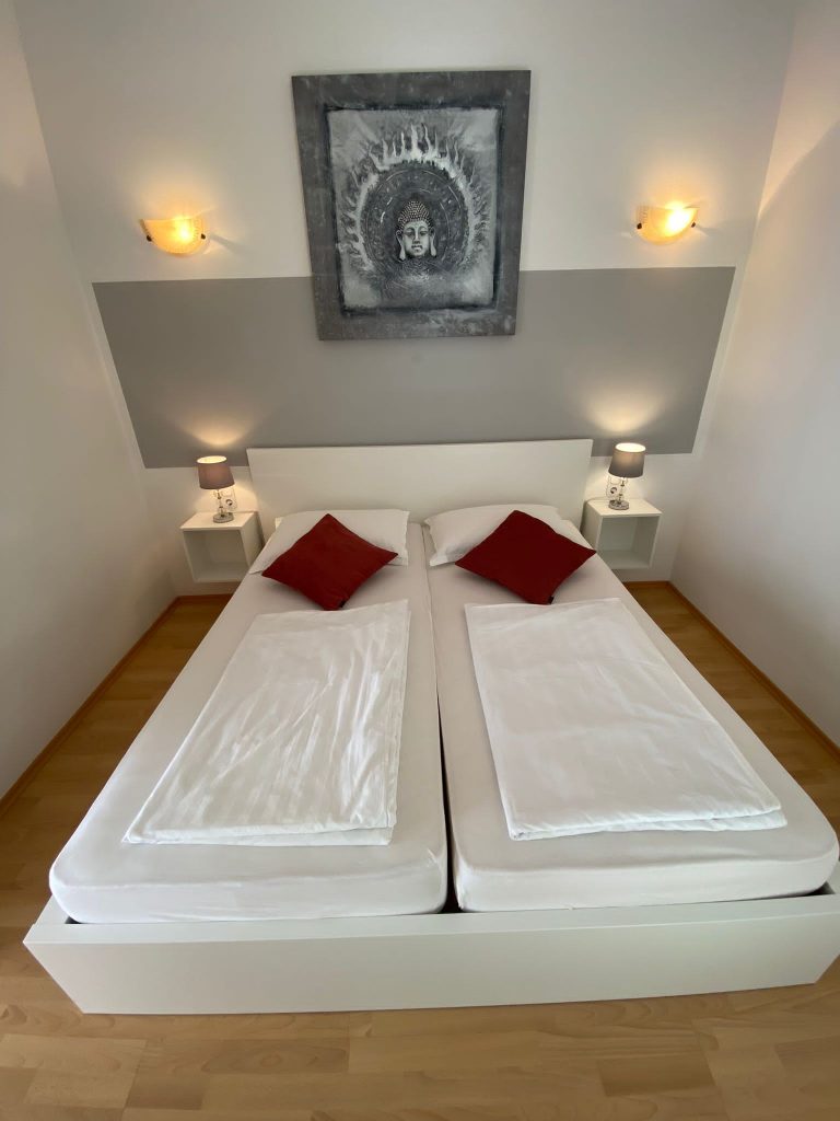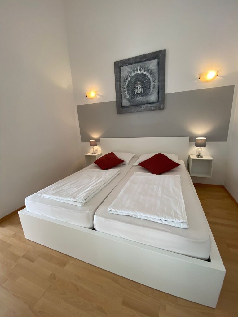 befindet sich im 2.Obergeschoss des Hauses und verfügt über ein wunderschönes, ruhiges Schlafzimmer mit einem großem Doppelbett, sowie einem weiteren Schlafzimmer mit einem Einzelbett.
